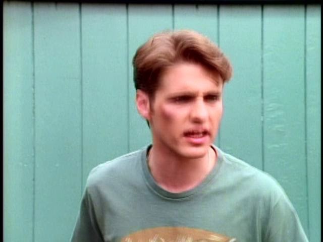 And then OH MY GOD I CAN'T UN-HEAR THIS KILL ME NOW Brandon pulls out a, "Don't have a cow, man" Bart Simpson NO NO NO NO NO. Look, I lived through the era when The Simpsons was new and exciting and everyone was spouting off quotes from the show left and right. My brother and I even had t-shirts, and I think mine was Bart with Don't have a cow, man emblazoned on it with him on a skateboard or something. And maybe because I'M OLD and it's like, 90 years later and it just feels so very, very dated, but Jason Priestley's reading of that line, and his attempted Bart-impression (which was really more Jeff Spicoli than anything) seriously made me want to shower myself with jagged river rock and then fall into a Xanax-induced coma. For the next 90 years.